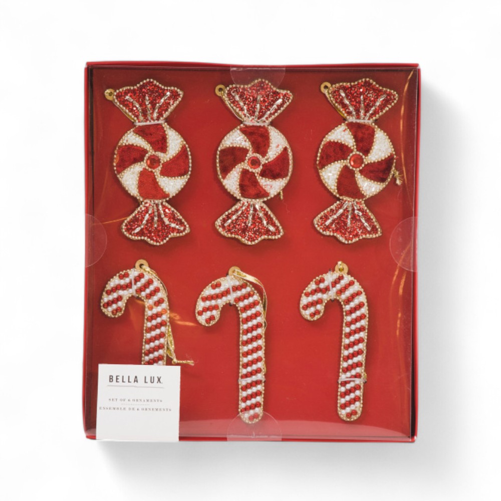 Set of 6 Beaded Peppermint Candy Ornaments - La Maison Chouette