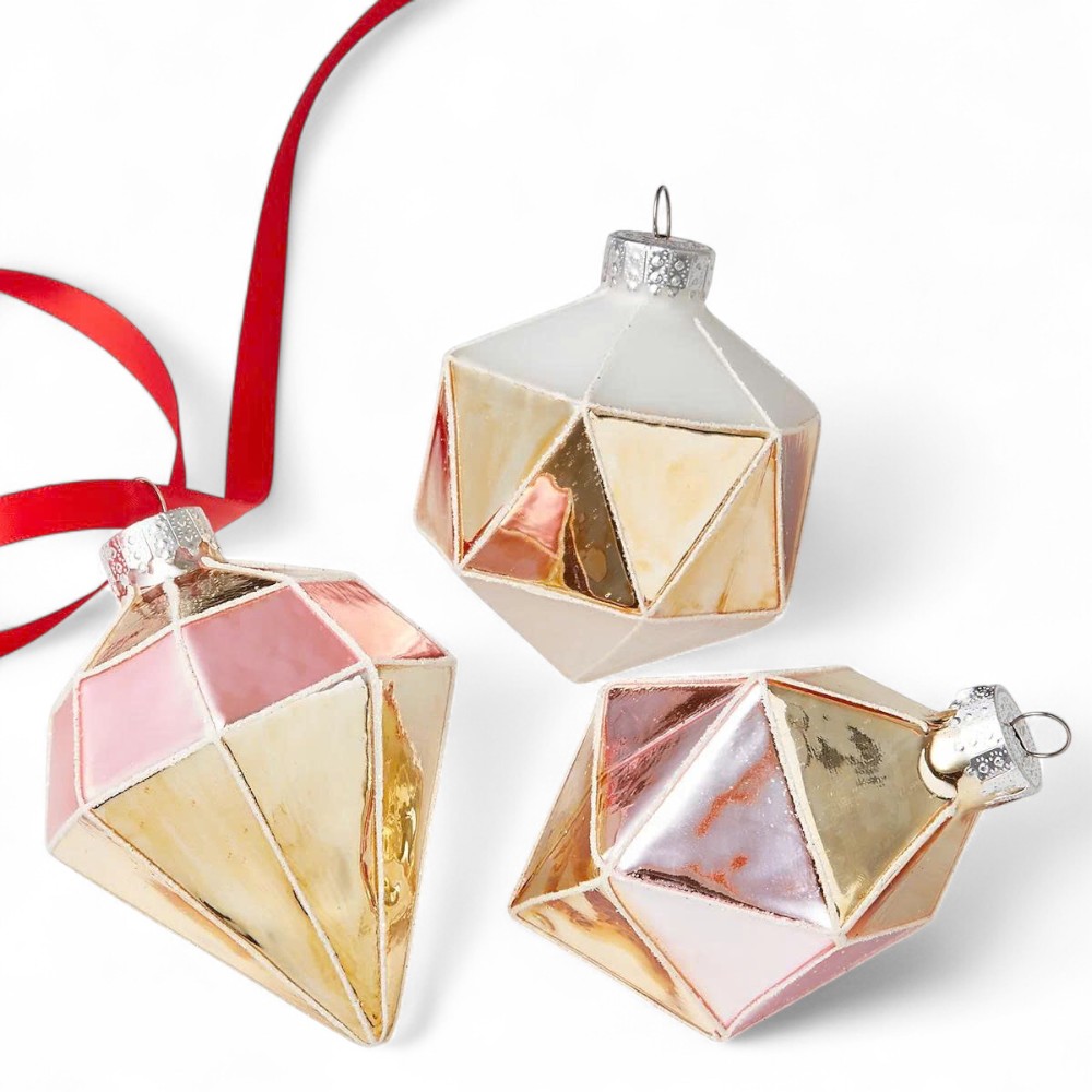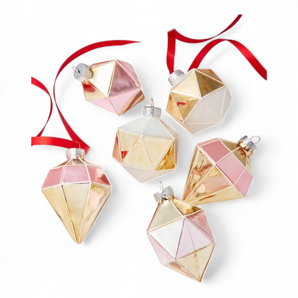 Holiday Lane Set of 6 Rose Gold Diamond-Shaped Glass Ornaments