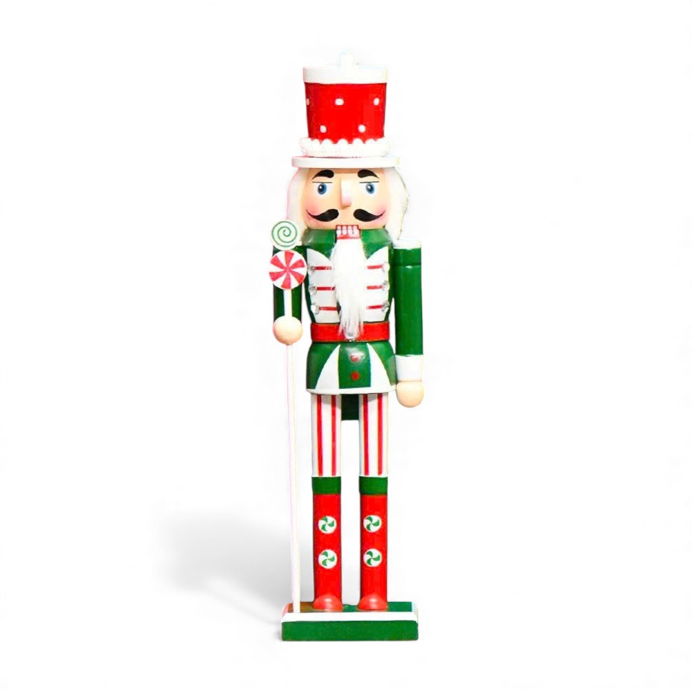Chú lính chì nutcracker xanh đỏ kẹo peppermint – Cao 38cm