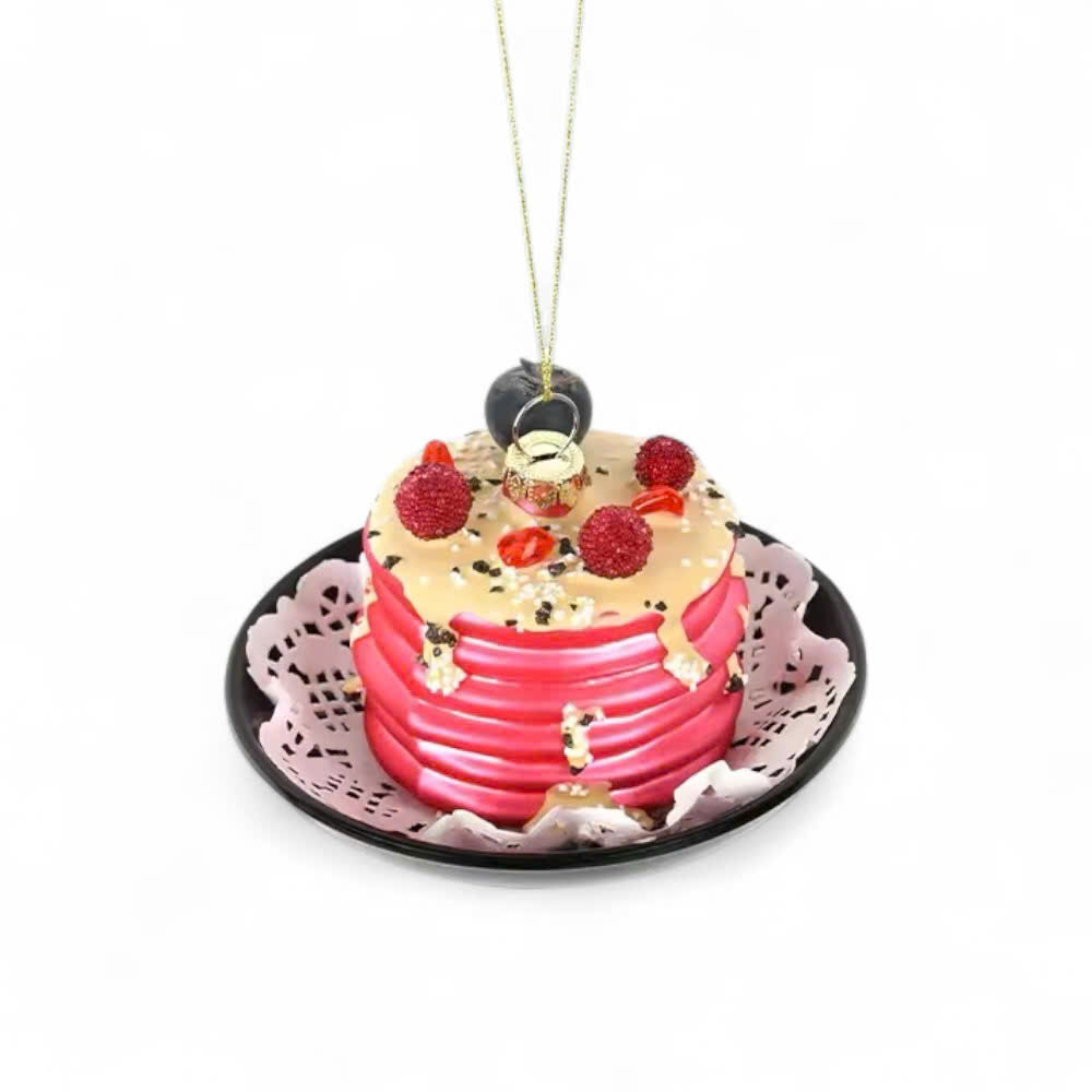 Đồ trang trí chồng bánh pancake và quả mâm xôi bằng thuỷ tinh