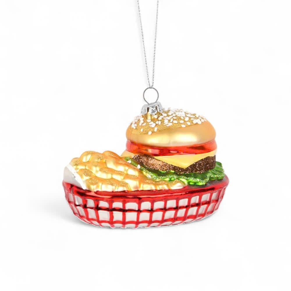 Đồ trang trí Hamburger và khoai tây chiên bằng thuỷ tinh