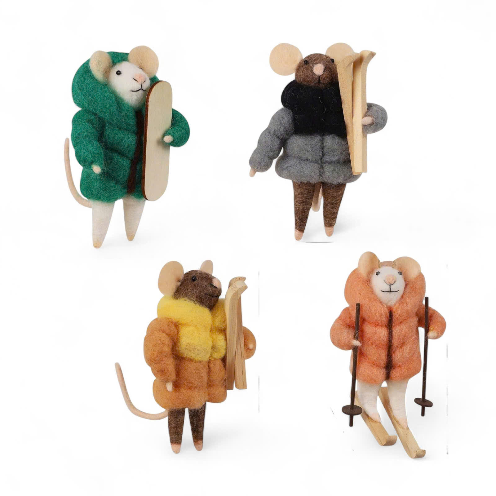 Bộ gồm 4 chú cáo Giáng Sinh bằng nỉ vô cùng đáng yêu, mỗi chú mang biểu cảm và dáng đứng riêng biệt — một chú ngồi trên xe trượt tuyết nhỏ, những chú khác cầm theo món đồ Giáng Sinh với tư thế hân hoan. Tất cả đều thể hiện trọn vẹn tinh thần vui nhộn của mùa lễ hội và mang đến nét sinh động cho không gian trang trí của bạn.