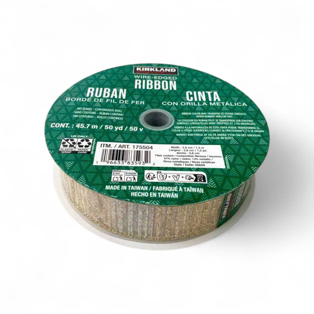 Ribbon Organza sọc kim tuyến vàng bạc bản 38mm - Cuộn 22m - La Maison Chouette