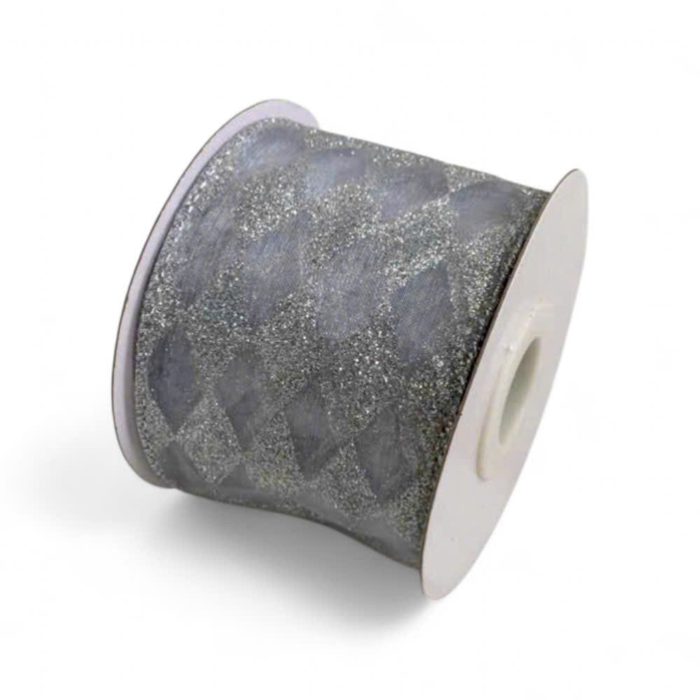 Ribbon Organza trong suốt hoạ tiết Harlequin kim tuyến bạc bản to 63mm – Cuộn 9m