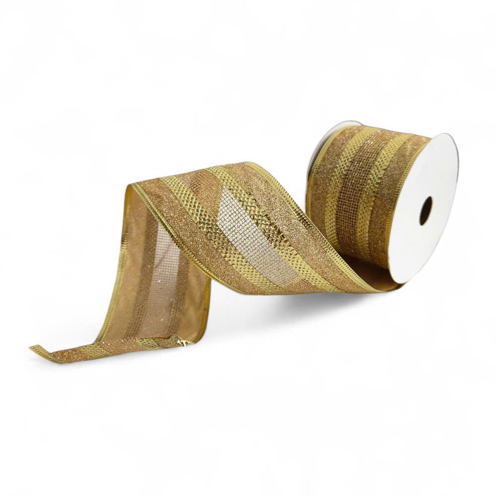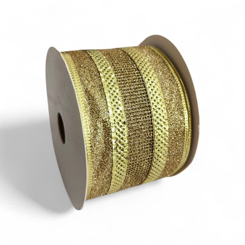 Ribbon vàng ánh kim hoạ tiết sọc lưới vàng đồng bản 63mm – Cuộn 9m