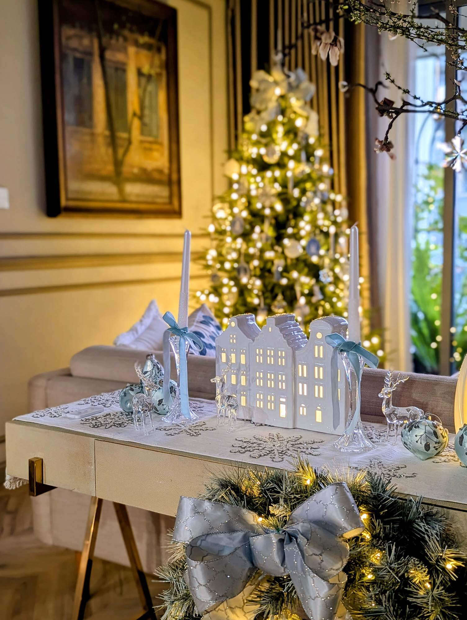 Có thể bạn chưa từng thấy quả châu nào đơn giản mà đặc sắc thế này; màu trắng sữa phủ lớp màu cầu vòng với hiệu ứng đọng sương trên bề mặt. Chắc chắn bộ châu này sẽ thu hút mọi ánh nhìn trên cây thông.