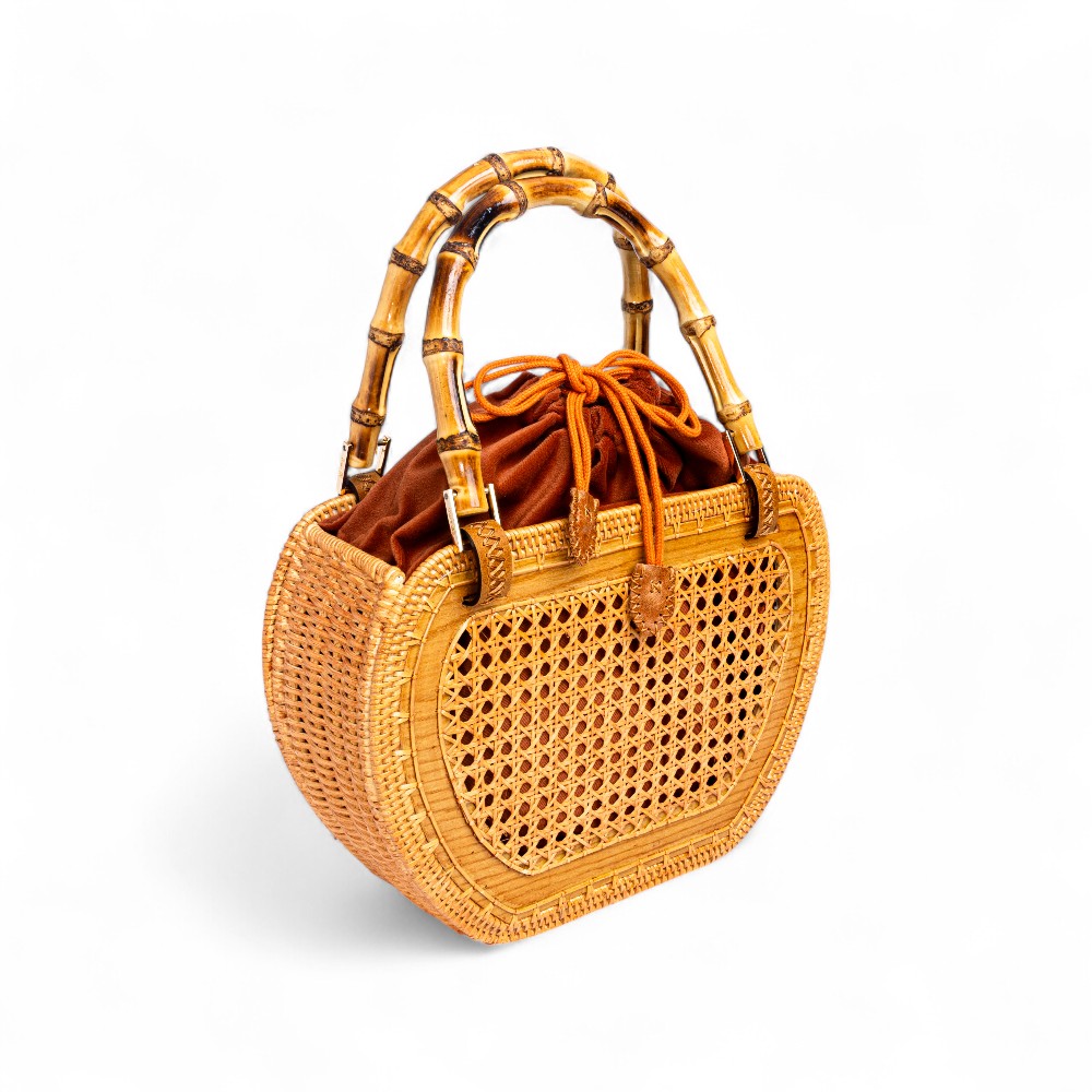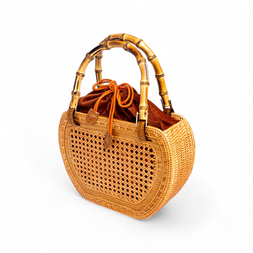 - Chất liệu: Mây đan tự nhiên, quai cầm bằng tre thật